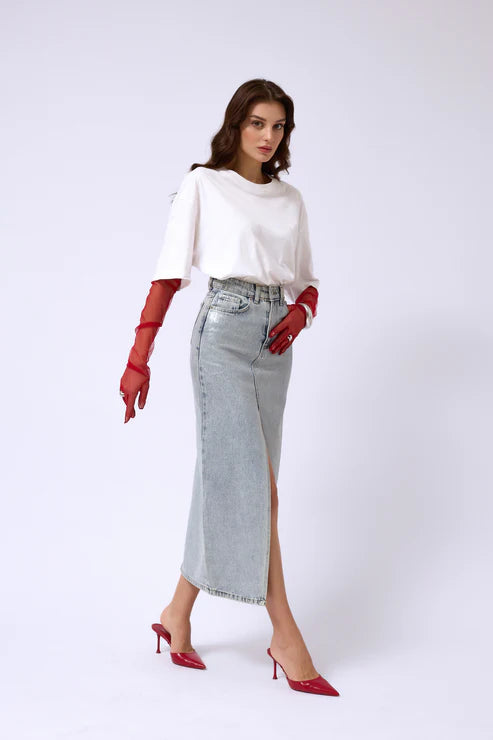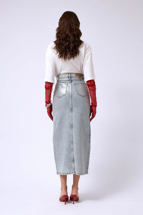 C&C Varak Baskılı Yırtmaçlı Maxi Kot Etek