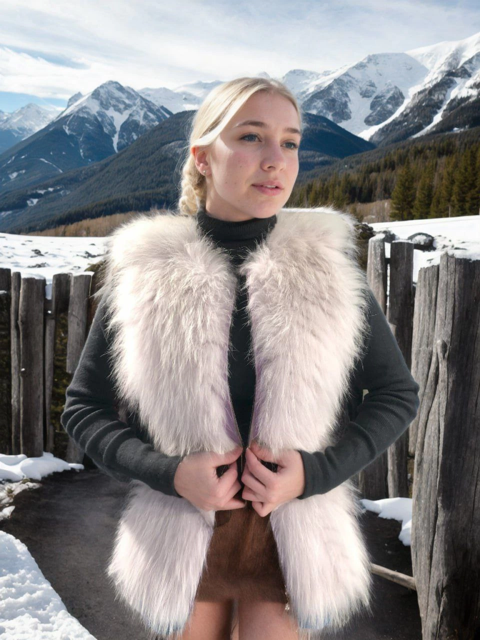 C&C Kadın Fermuarlı Koyun Derisi Tilki Kürkü - Beyaz