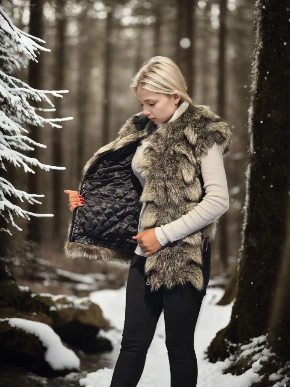 C&C Kadın Kolsuz Hakiki Deri Kürk - Siyah