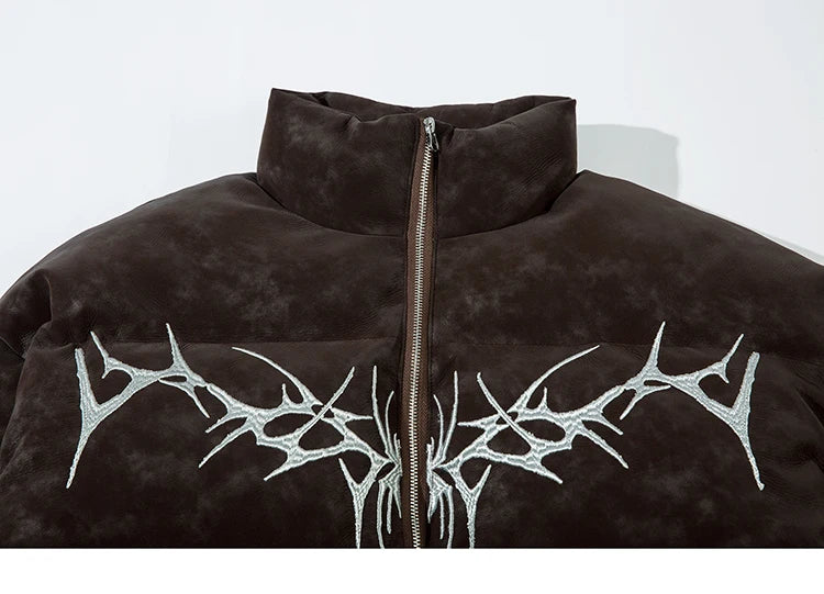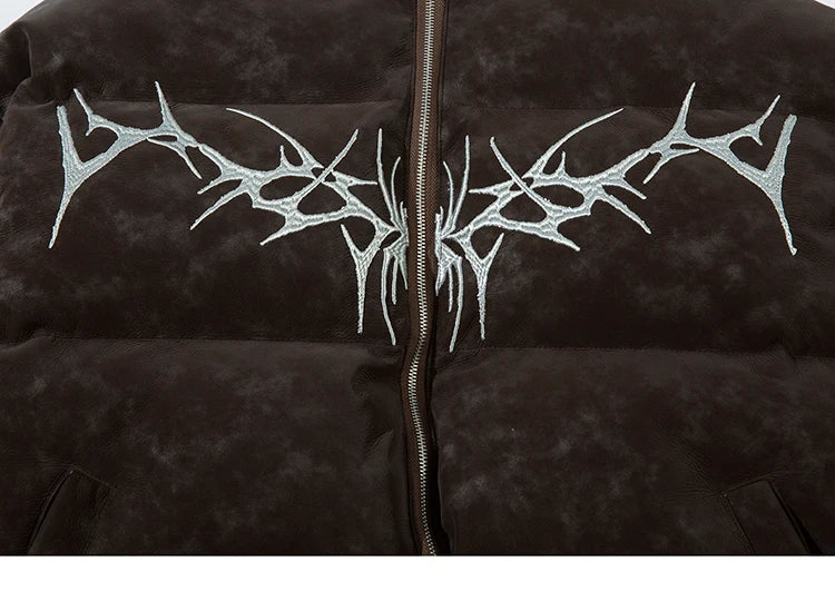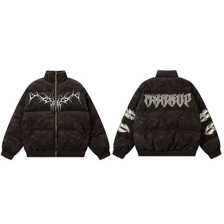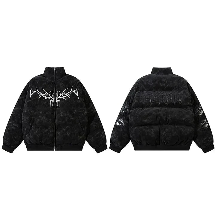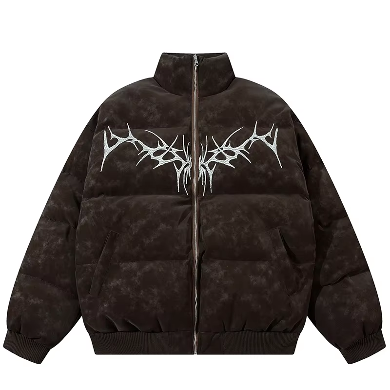 Organik desenlerle hareket kazanan bu puffer ceket, hem sıcak tutar hem stilini öne çıkarır. Oversize yapısı ve modern formuyla sokak modasında güçlü bir ifade sunar.